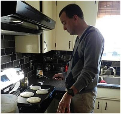 Girls, this is the kind of guy you want to marry. Yesterday he was replacing the guts of a toilet tank and this morning he’s making pancakes for his boys.