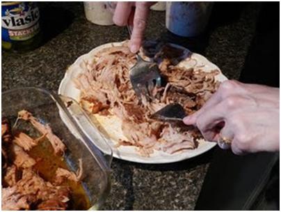 When the time comes, let the meat rest and cool for a few minutes before pulling it between two forks to achieve the shredded texture pulled pork is known for.