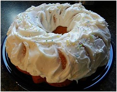 Lemon Cake (from a box) with lemon cream cheese frosting. Yum.