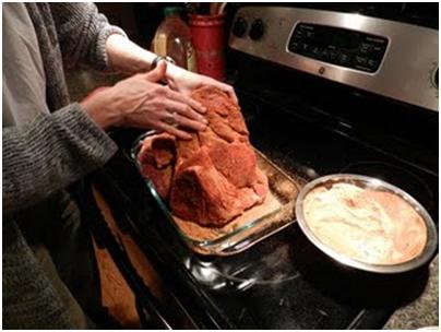 For the first four hours they are exposed to the air in a 250 degree oven with apple juice in the bottom of the pan. I used a turkey baster to periodically drizzle them with apple juice so they wouldn’t dry out.
