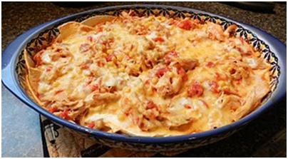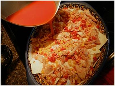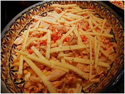 The rest of the tortilla strips were followed by the rest of the chicken mixture.
