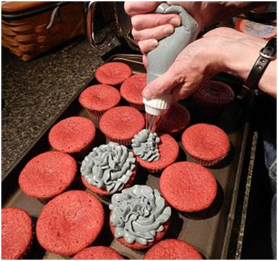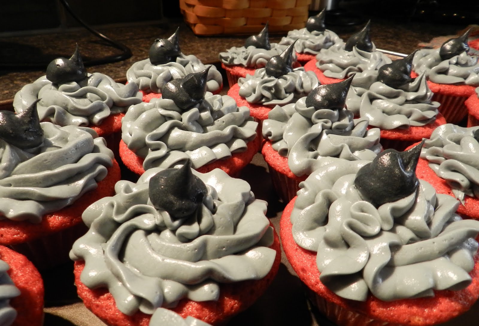 Once they are cool, use your clean fingers to rub off the inevitable crumbs that will be stuck around the edges. Set them aside to wait while you go on to the cupcakes. The cupcakes can be any kind you want to make. If you want to hear about the escapades involved in making mine, go to…. Lessons in Red Velvet.