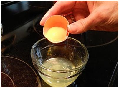 Separate the yolk from the white and drop it in. I do this by cracking the shell in half and plopping the yolk back and forth between the two shells until all of the white has dropped away. If some of it is clinging I kind of use the other shell to cut it away. I think this saves me a whole $2.00 splurge on an egg separator.