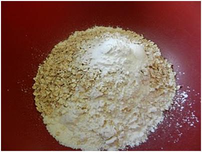 1 cup of: oats, whole wheat flour, another cup of all purpose flour or any other combination of dry flour-like stuff that I am in the mood to throw in