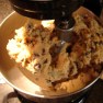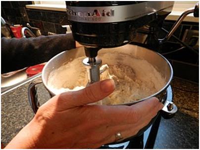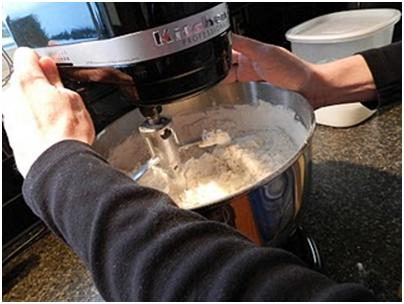 And, mix again. Good Ku-Ki-Do should turn into a big firm lump and leave the sides of the bowl practically clean without a spatula. If your dough is sticky, add a little extra flour, unless it’s because your butter was too soft. If the butter was too soft, then you’ll just have to live with cookie flavored pancakes.