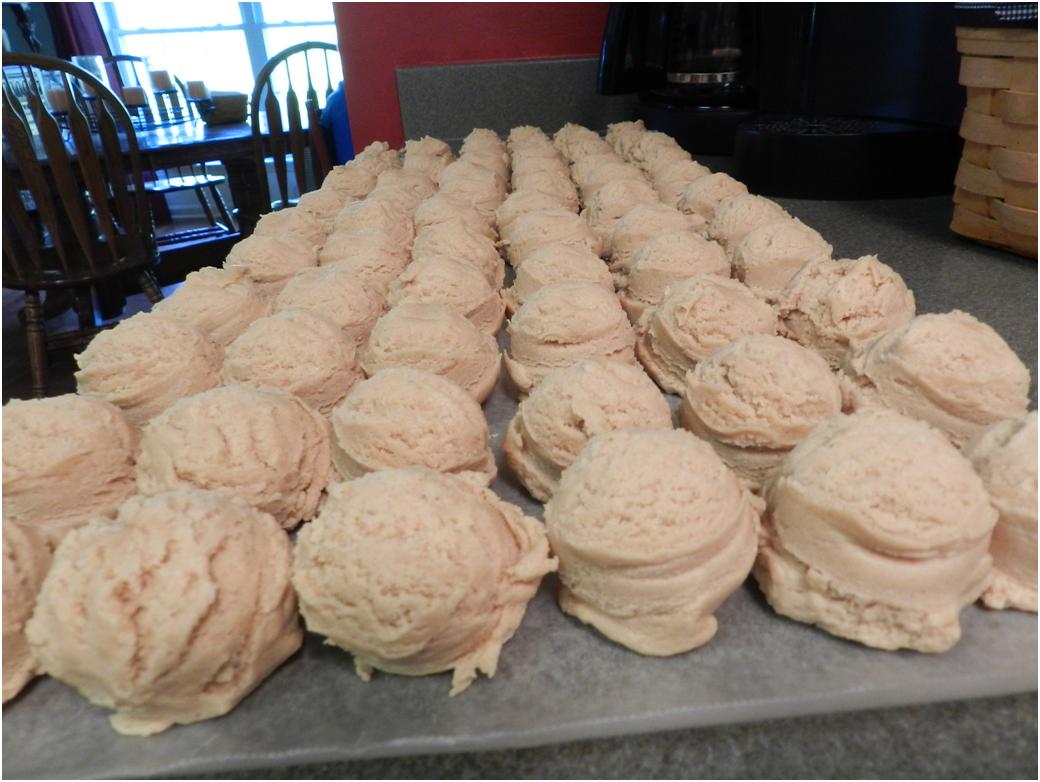 1 cup butter – very firm ½ cup butter flavor Crisco (…I’ll explain below.) 1 cup sugar 1 cup brown sugar packed ½ cup molasses (don’t skimp) 2 large eggs 4 ½ cups flour 4 tsp baking soda 1 tsp cloves 1 tsp cinnamon 1 tsp ginger ½ tsp saltPreheat the oven to 350 degrees with the baking stone in it.