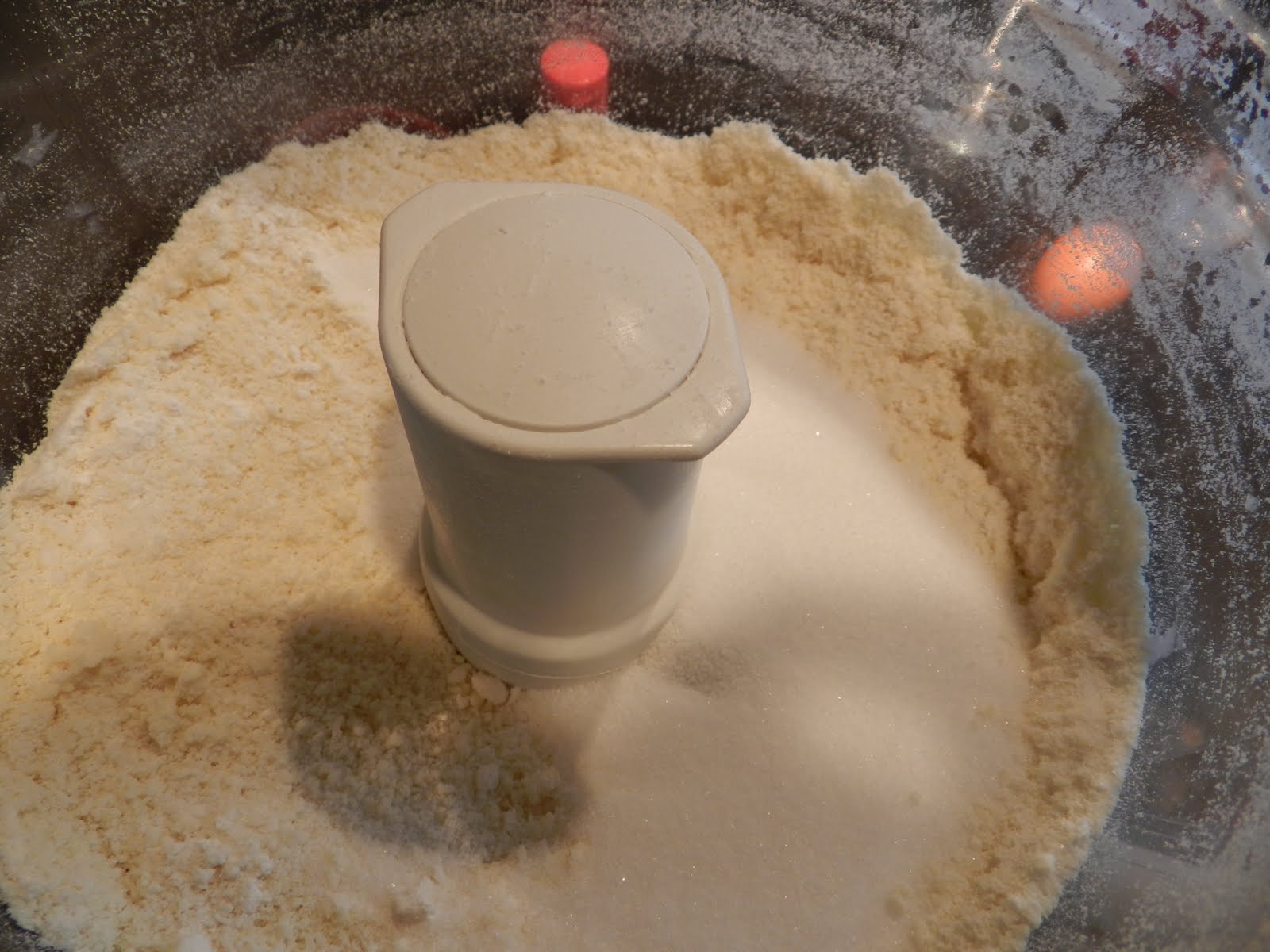 Cut the butter into cubes and drop them into the food processor with the flour and pinch of salt.
