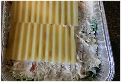 Stay tuned for the post on the Strawberry Pretzel dessert we had the same night which will explain why we had to use foil pans for the lasagna.