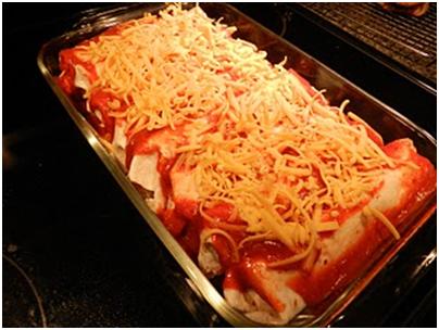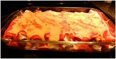When we’re getting ready to move I start to operate under a self-imposed grocery buying moratorium and use up what’s in the cabinets. The creativity that emerges usually doesn’t result in anyone saying, “Ooooh, make sure you write this one down!” but a few nights ago we hit on a keeper – a cross between enchiladas and lasagna.