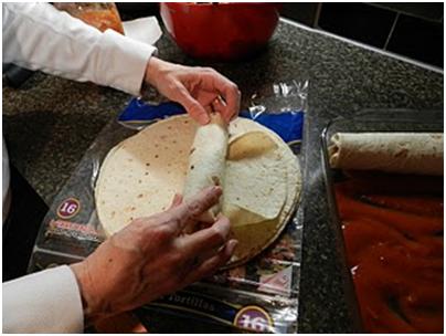 I cut the tortillas into strips that would act like lasagna noodles. (Note that spelling and see my rant below!) I also cut a few slices of pepper jack cheese into thin strips and dug out a handful of shredded cheddar.
