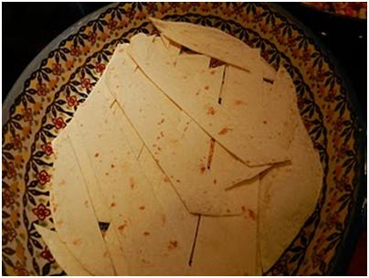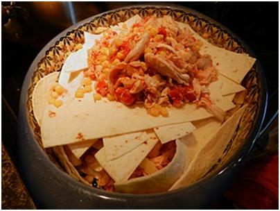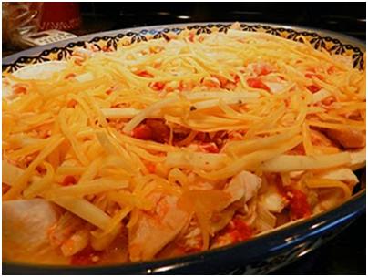 The rest of the tortilla strips were followed by the rest of the chicken mixture.