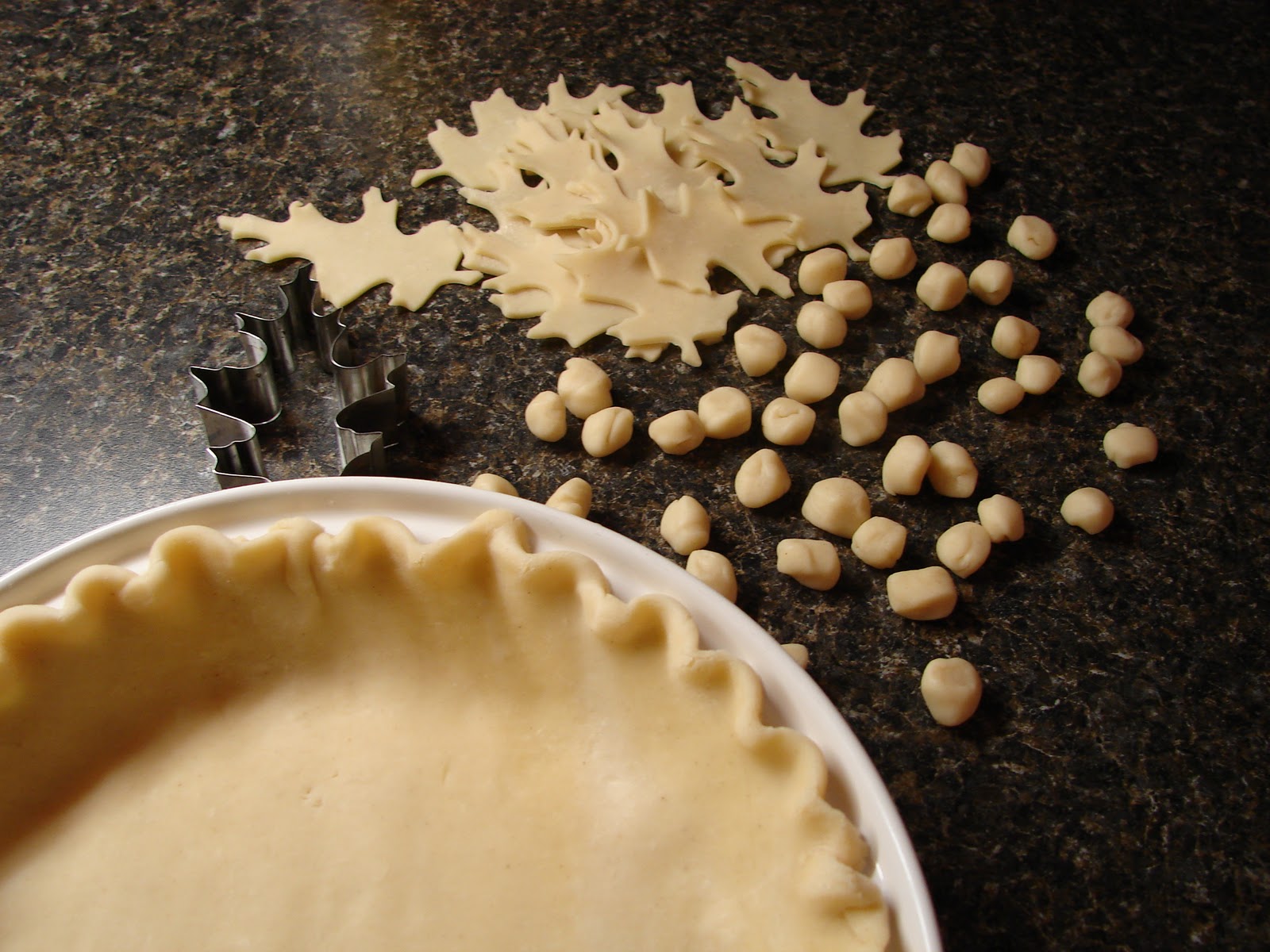 Three strips of foil folded together into one long strip and then turned into a loop and pressed around the edges. I have visions of cutting my fingers on the foil just thinking about this process, but it really does help on pies that have to bake for a long time.