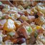 There is no mystery about why I like this salad – sweetness, saltiness, crunchiness, chewiness, and even cheese! What’s not to love? The mystery is in how the combination is so much greater than the sum of the parts! My friend Katherine Dunn made if for a welcome picnic while we lived in Germany and I fell in love. Thankfully, she is the type of person who promptly follows through when she promises you a recipe. I imagine she is often asked for them because I happen to have more than one in my own collection. Here are the directions exactly as given – and I actually follow them that way!