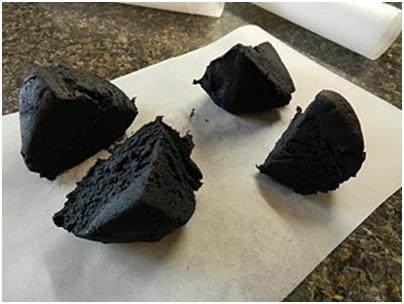 Process again. It will get to a crumbly state like this. Then you can add the food coloring.