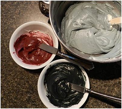 Color the remaining frosting to the main color you’ve chosen. I made gray by adding a small amount of black Wilton gel food coloring. Gel food coloring is critical for frosting because it doesn’t mess with the consistency like liquid.
