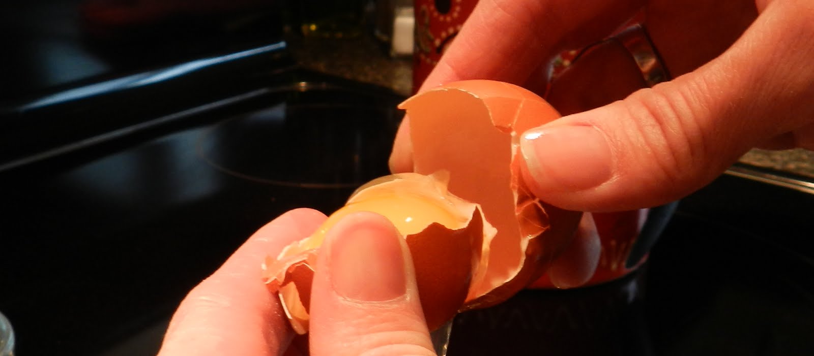 Separate the yolk from the white and drop it in. I do this by cracking the shell in half and plopping the yolk back and forth between the two shells until all of the white has dropped away. If some of it is clinging I kind of use the other shell to cut it away. I think this saves me a whole $2.00 splurge on an egg separator.